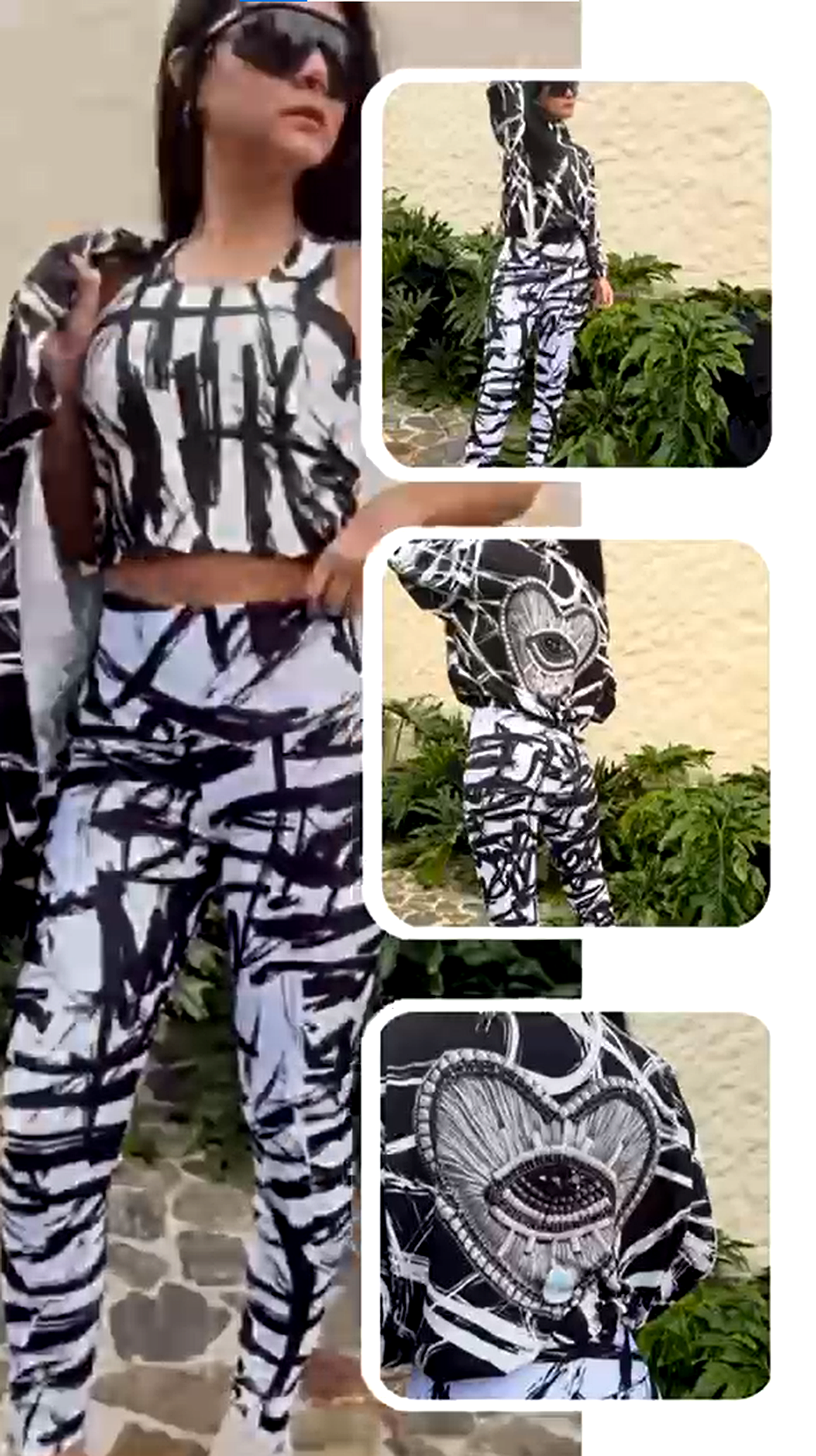 Un conjunto impactante en blanco y negro inspirado en trazos tipo rayo, perfecto para quienes buscan un look moderno, urbano y lleno de personalidad.
