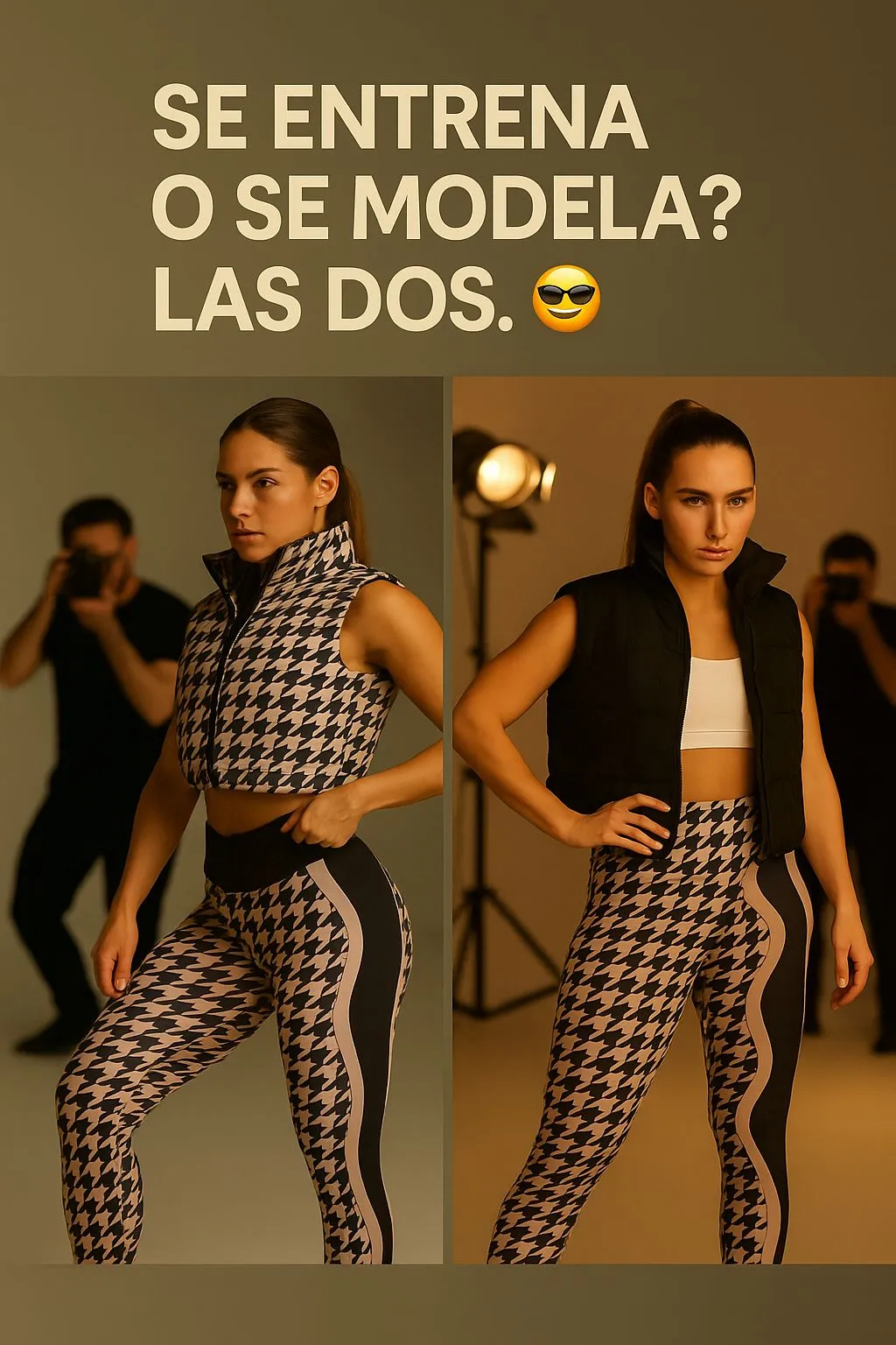 Un outfit diseñado para mujeres que buscan estilo y rendimiento en una sola propuesta. El chaleco acolchado reversible aporta practicidad y modernidad, mientras que los leggings de tiro alto realzan la silueta y ofrecen máxima comodidad.