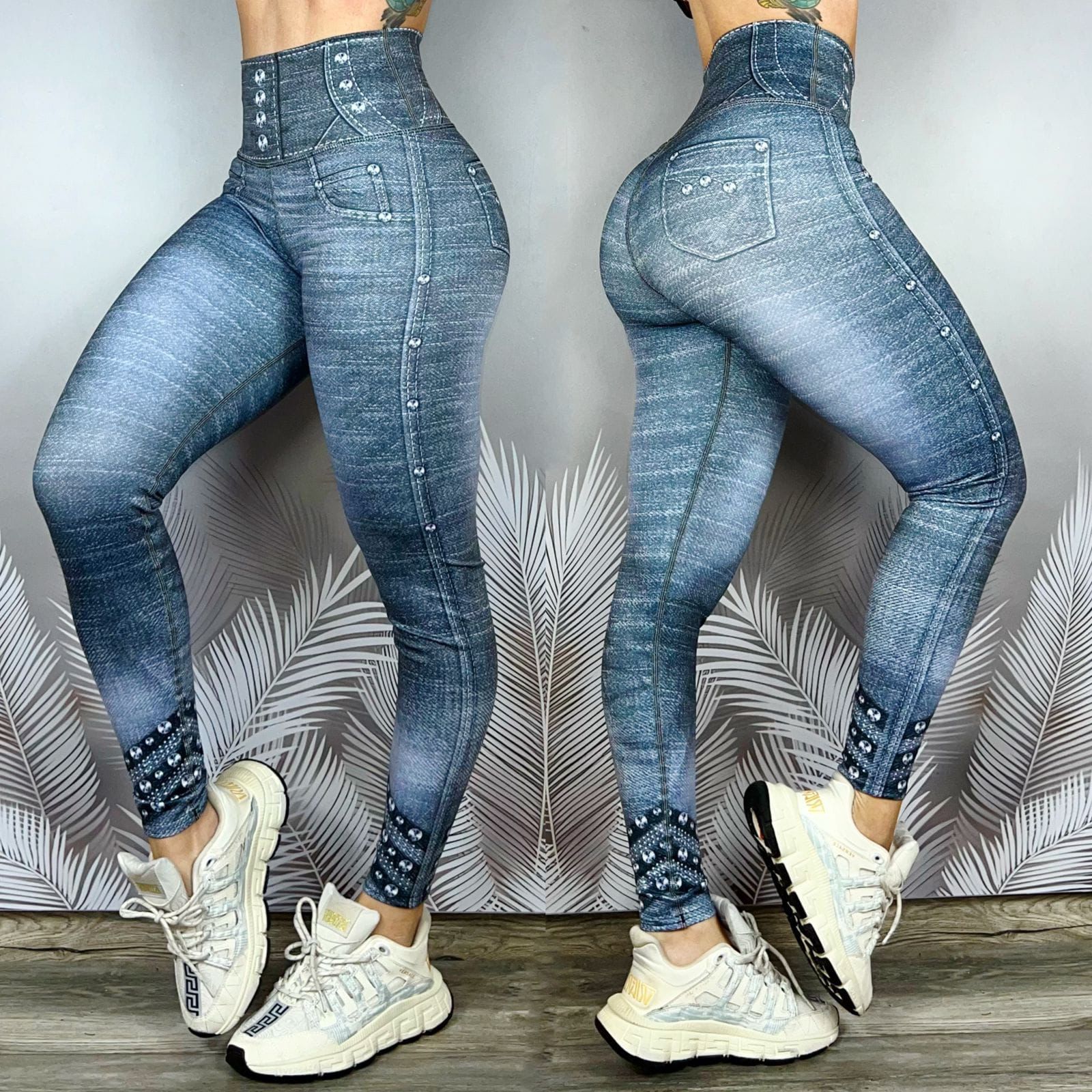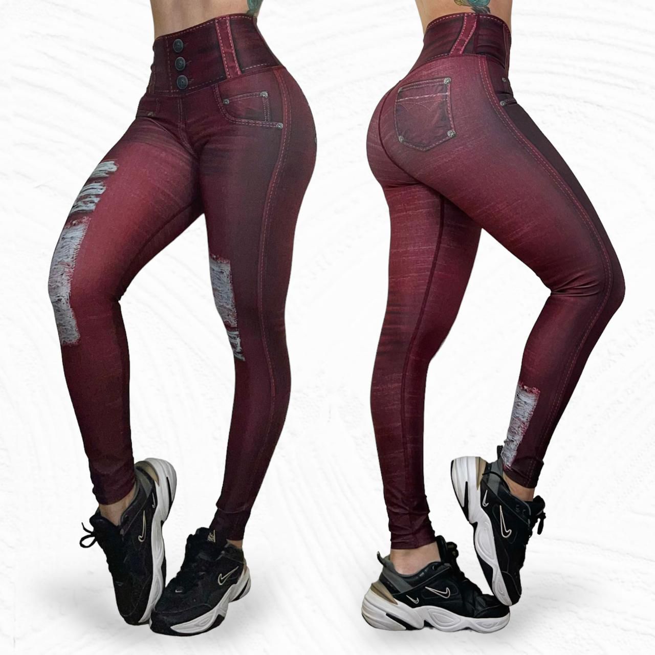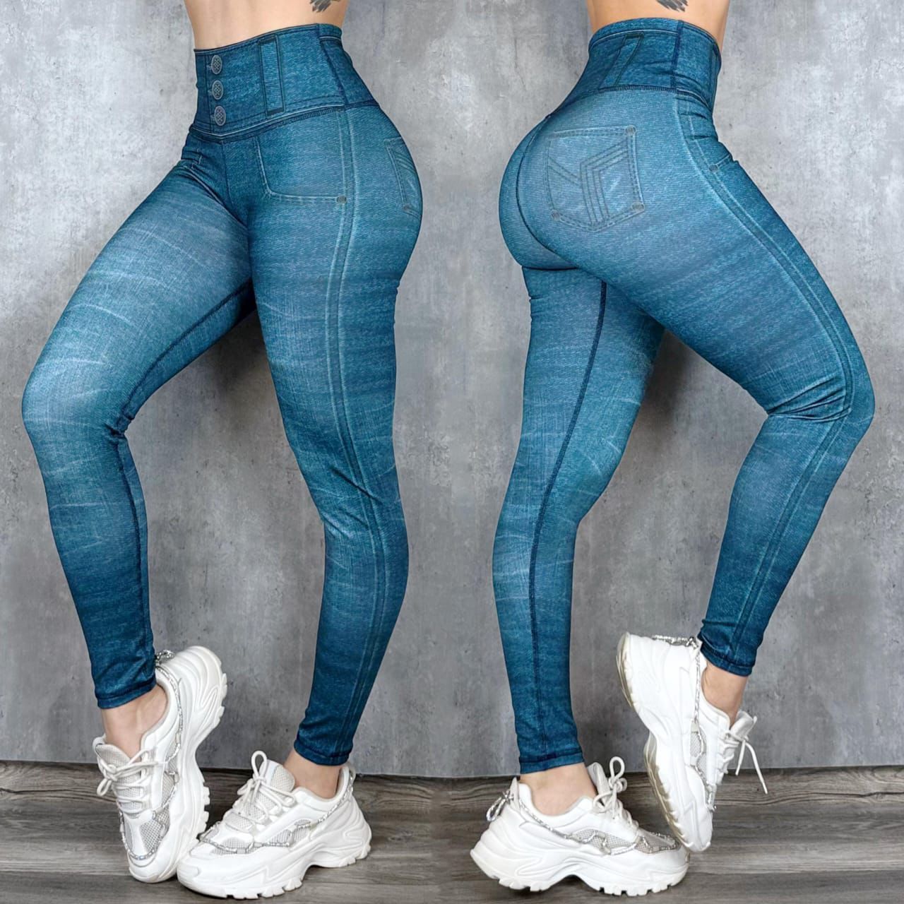 Un diseño moderno que simula el look del denim con la comodidad de unos leggings, ideal para crear outfits casuales o deportivos sin perder estilo.